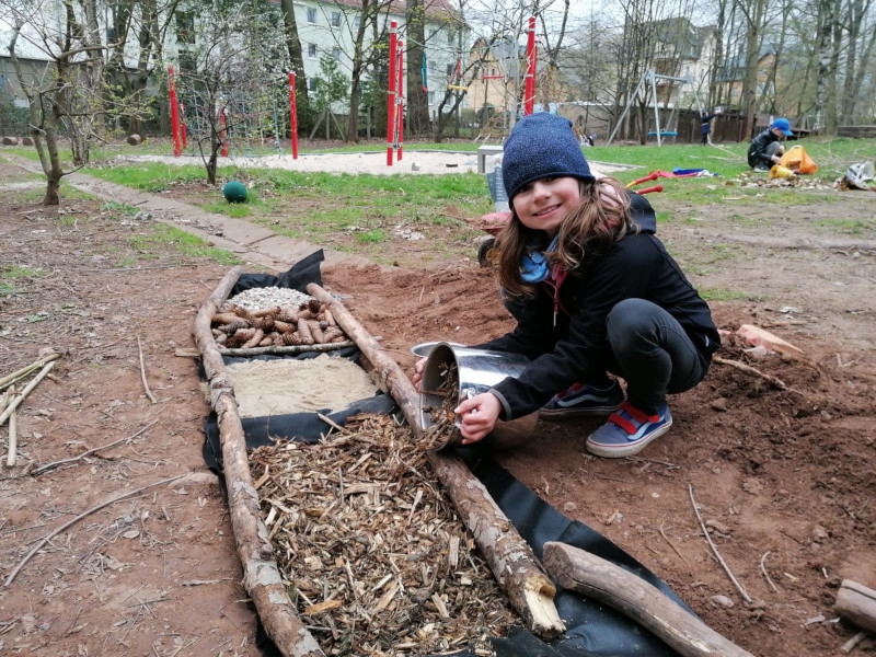 Am Mittwoch in den Osterferien gestalteten wir einen Barfußpfad auf unserem Schulgelände.