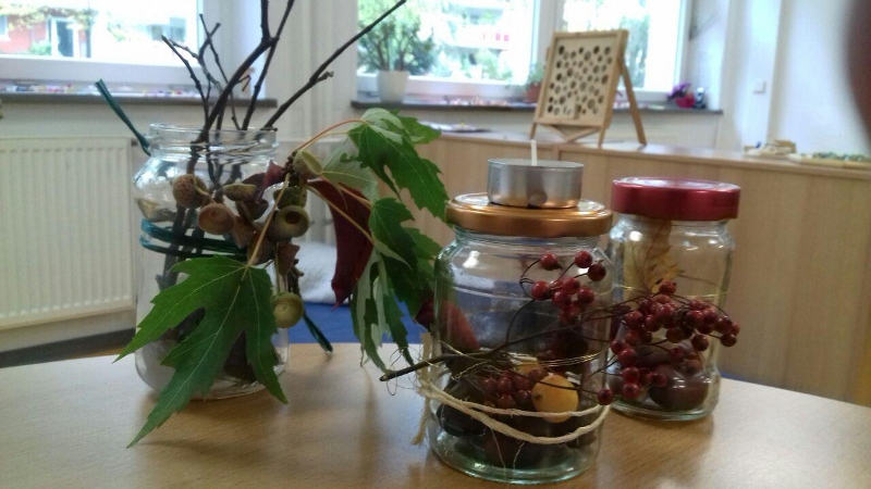 Die Herbstferien nutzten wir, um es uns richtig gemütlich zu machen. Wir gestalteten unter anderem aus Naturmaterialien dekorative Windlichter.