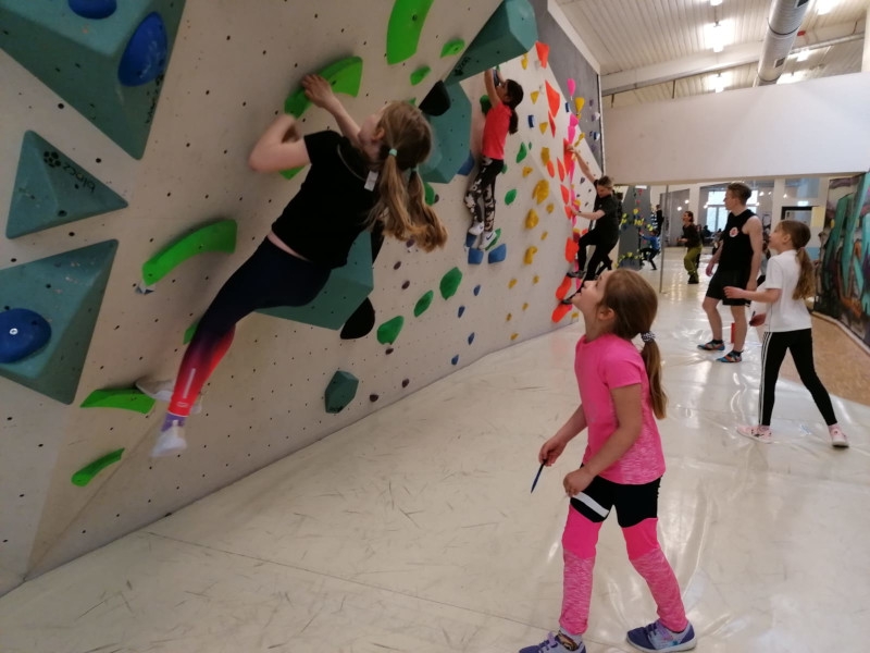 Der Feriendonnerstag startete mit Nieselregen. Wir ließen uns dennoch nicht davon abbringen, zur Kletterhalle zu wandern. 1,5 Stunden liefen wir durch den Stadtpark und erreichten rechtzeitig unser Ziel.