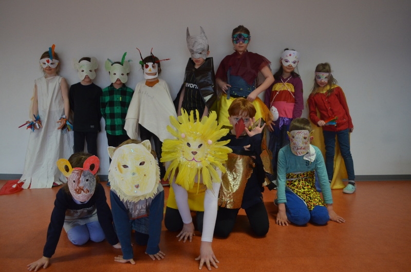 Die erste Winterferienwoche stand ganz im Zeichen der Faschingsvorbereitungen. Jedes der Kinder durfte einmal sein eigenes Kostüm entwerfen, zuschneiden, basteln, kleben und bauen.
