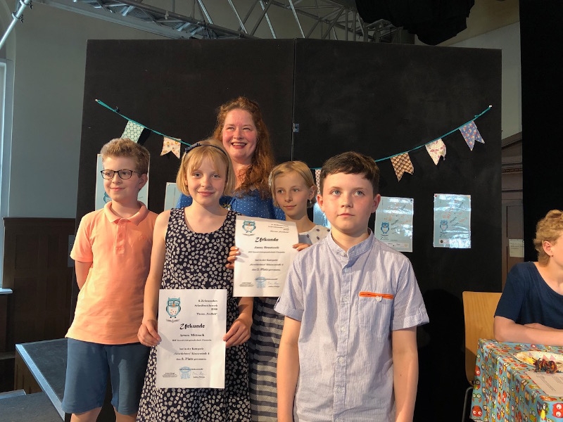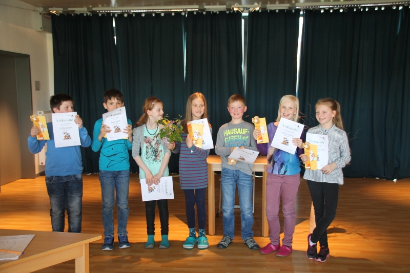 Für unseren jährlichen Vorlesewettbewerb qualifizierten sich 4 Schülerinnen und 3 Schüler. Aus der Klasse 3 sind das Joshua, Jonah H., Yakini und Marlene und aus der Klasse 4 Richard, Henriette, Sophie, Thordis und Helene.