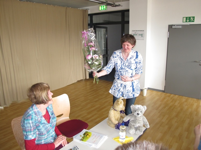Am Mittwoch trafen sich interessierte Mädchen und Jungen in unserem Mehrzweckraum. Dort begrüßten sie Frau Astrid Lose, Autorin des Kinderbuches "Kleiner Teddy sucht eine Mama", sowie ihren Ehemann Herrn Wolfgang Lose (Fotograf).