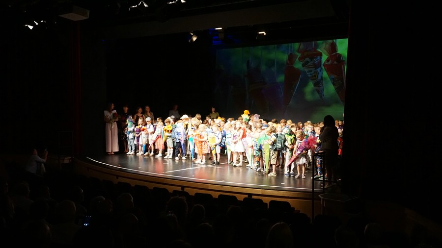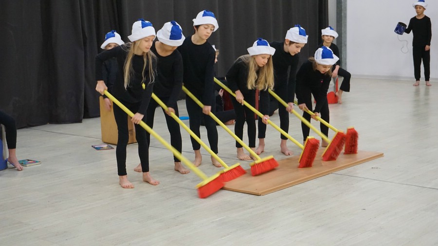 So beschwört Viktoria den Besen aus Goethes Zauberlehrling. Die Viertklässlerin präsentiert das lange Gedicht auswendig in der Aula. Kurz zuvor wurden tatsächlich Zaubertricks vorgeführt.