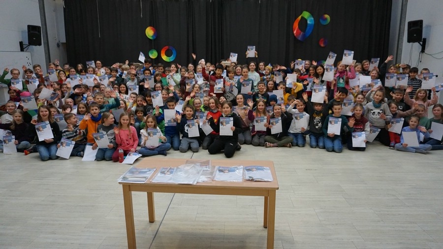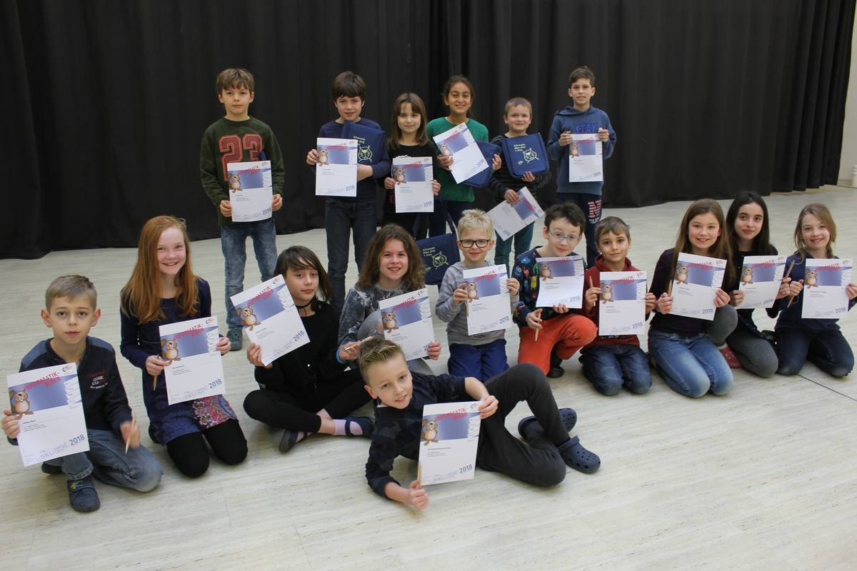 Siebzig Kinder verbrachten ihre Frühstückspause heute nicht auf dem Schulhof. Sie erhielten in der Aula stattdessen Urkunden und Preise für die Teilnahme am Informatik-Biber-Wettbewerb.
