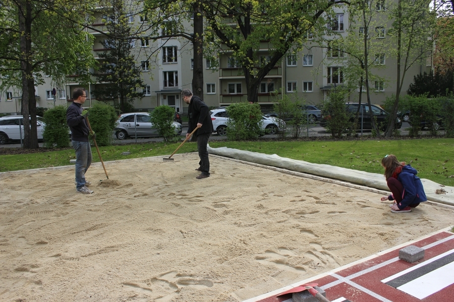 "Wir bräuchten jetzt mal bitte die Hilfe von allen! Kommt herüber und stellt Euch alle im Kreis auf!" ruft Erzieherin Theresa Lorenz.