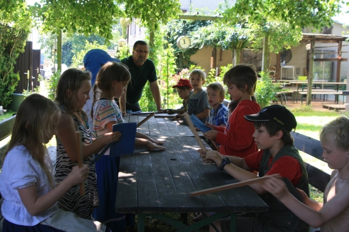 Bereits zum 10. Mal fand in der ersten Ferienwoche in den Sommerferien auf dem Töpferhof des Ehepaars Thibault in Schmorkau das Kunst- und Wildniscamp statt.