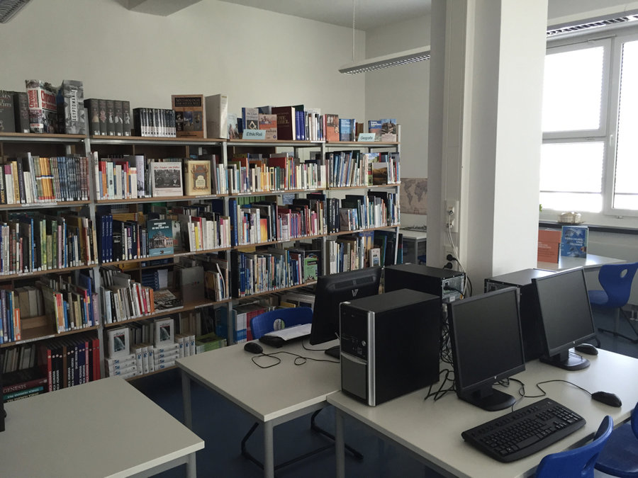 Bibliothek des Gymnasiums, geöffnet bis 18:00 Uhr