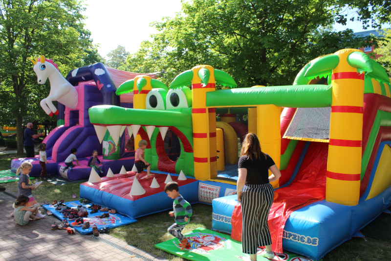 Nicht nur eins, zwei, drei, sondern vier Hüpfburgen standen den Kindern zum Kindertag zur Verfügung.